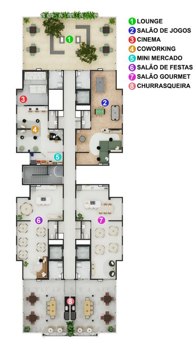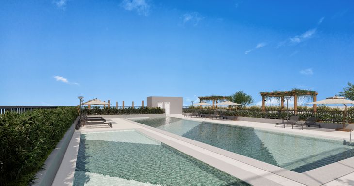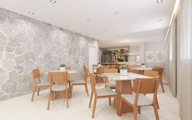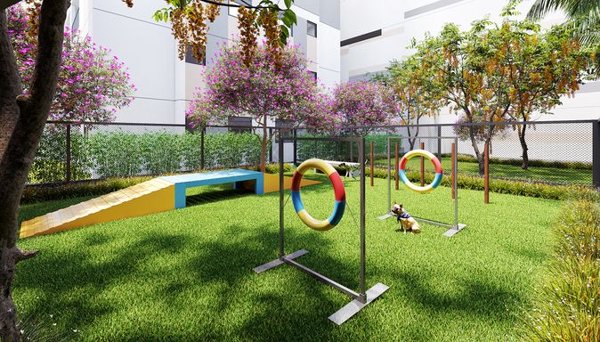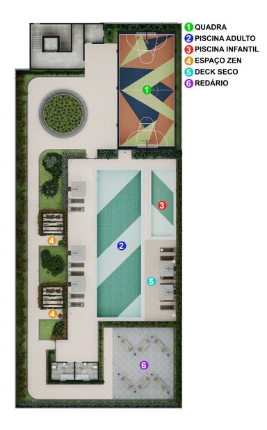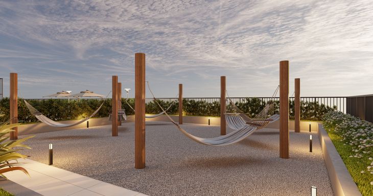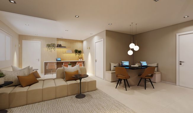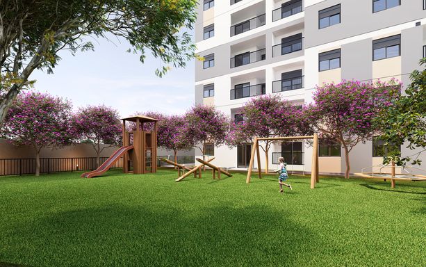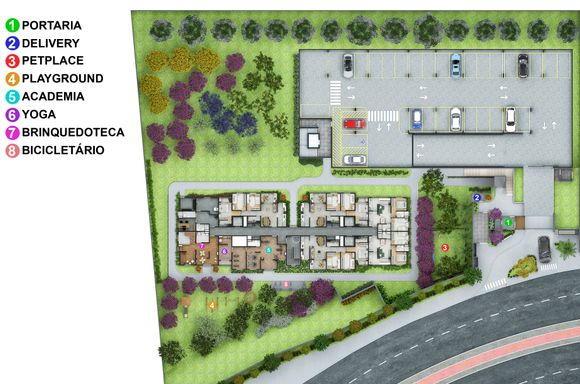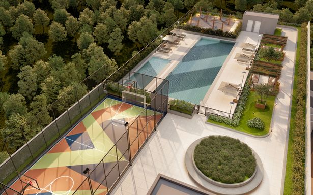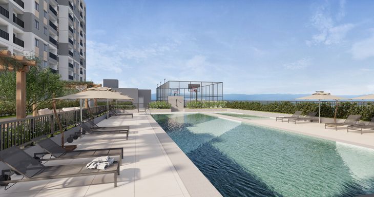 ITENS: Piscina adulto, Piscina infantil, Espaço delivery na portaria, Bicicletário, Mini-mercado, Redário, Coworking, Quadra recreativa, Academia, Espaço Zen, Salão de festas, Salão de jogos, Brinquedoteca,