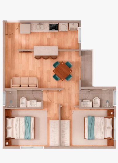 Apartamento de 2 dormitórios com suíte — 52 m² com varanda