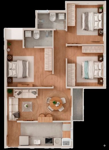 Apartamento de 3 dormitórios com suíte — 65m² com varanda